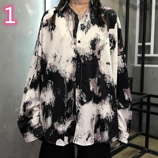 秋 メンズ トップス 韓国ファッション 長袖 シャツ カジュアル 絞り染め